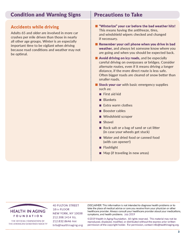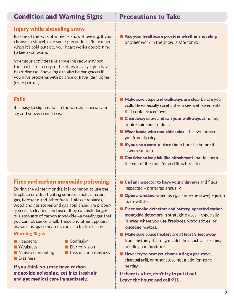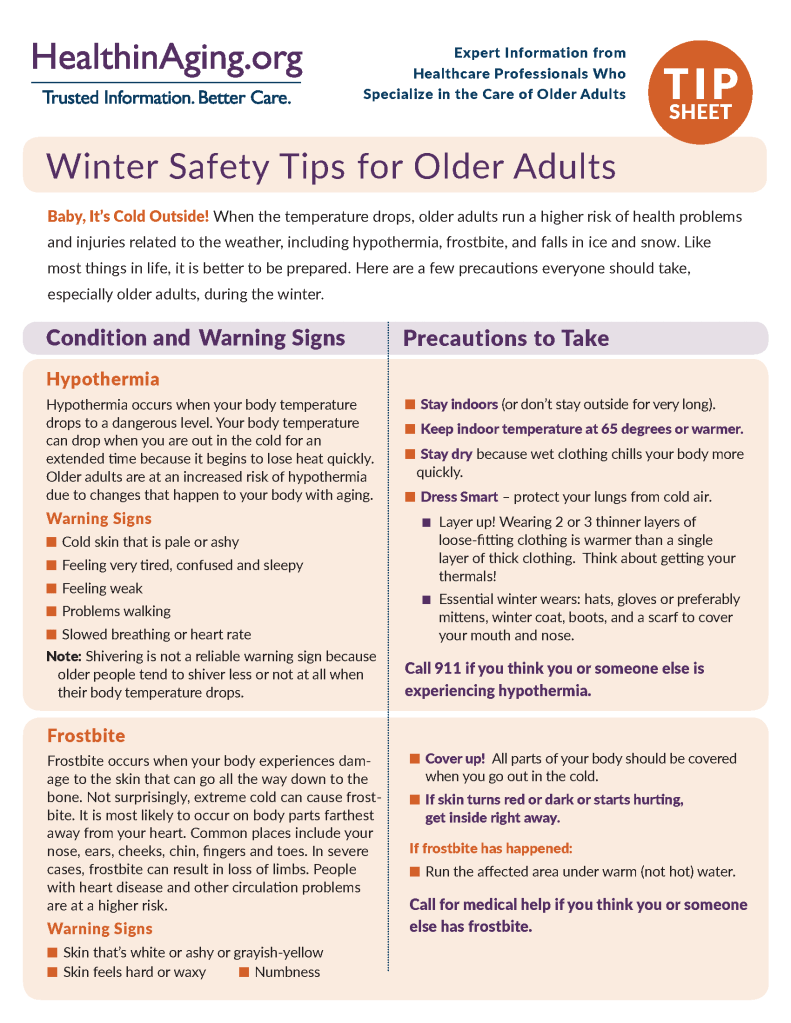 Take a look at the winter safety tips for older adults below. It gives a lot of great precautions to take to remain safe.