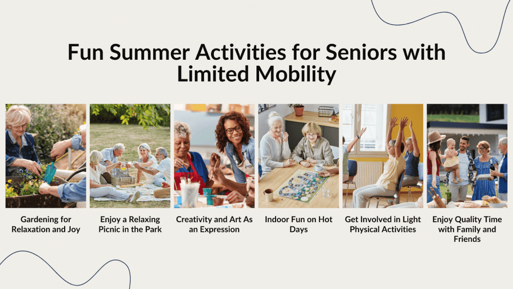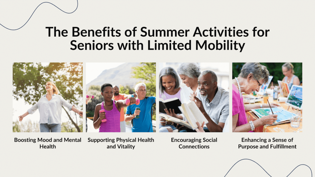 These activities can be adapted for seniors with limited mobility to ensure they remain active, connected, and fulfilled. Below are some of the key benefits of encouraging seniors to participate in summer activities.