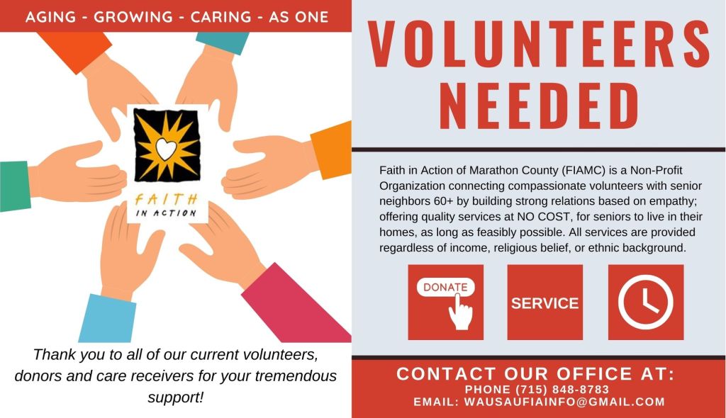 For your convenience, we offer multiple ways to submit a Volunteer application. If you have any questions or need assistance, please call our office at (715) 848-8783.